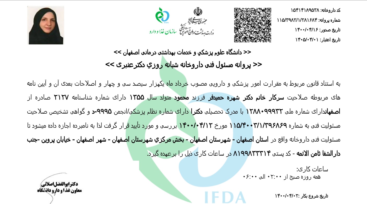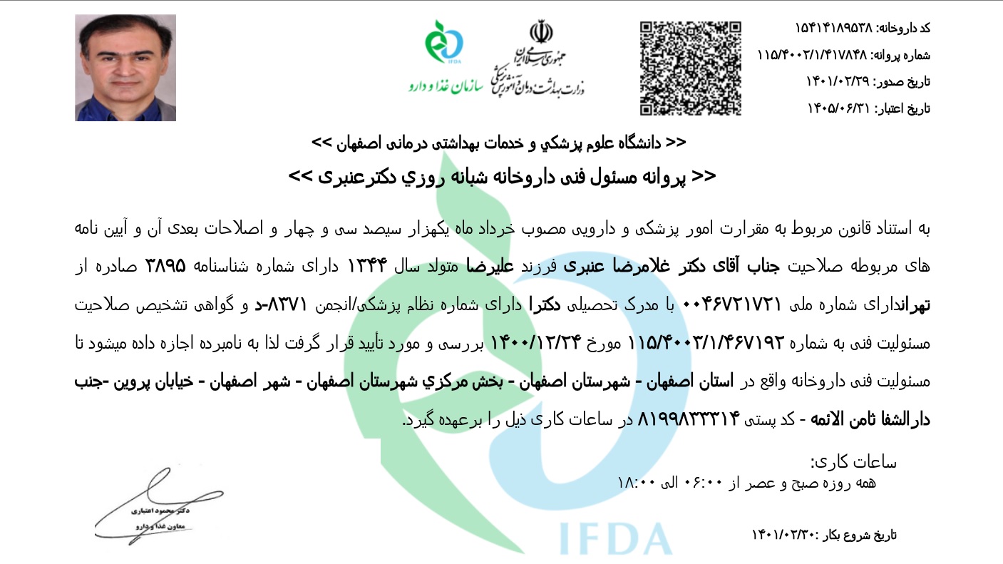 دکتر غلامرضا عنبری، داروساز حرفهای (Pharm.D) در شهر اصفهان با شماره نظام پزشکی د-8371، بنیانگذار این مجموعه تخصصی است.