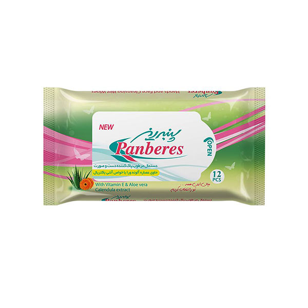 دستمال مرطوب دست وصورت پنبه ریز 12 عدد