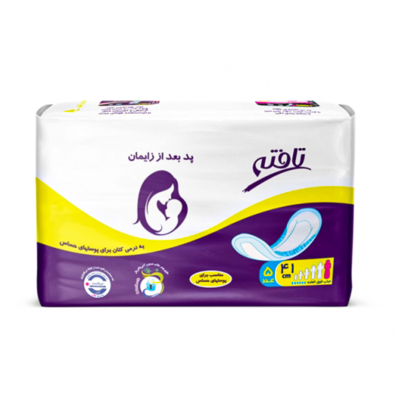 نوار بهداشتی بالدار بعداز زایمان تافته مناسب پوست حساس 5 عدد