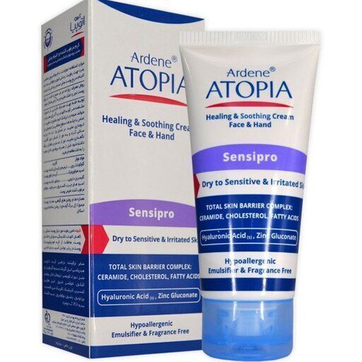 کرم مرطوب کننده و التیام بخش دست وصورت ATOPIA مدل Sensipro حجم 50 میلی لیتر