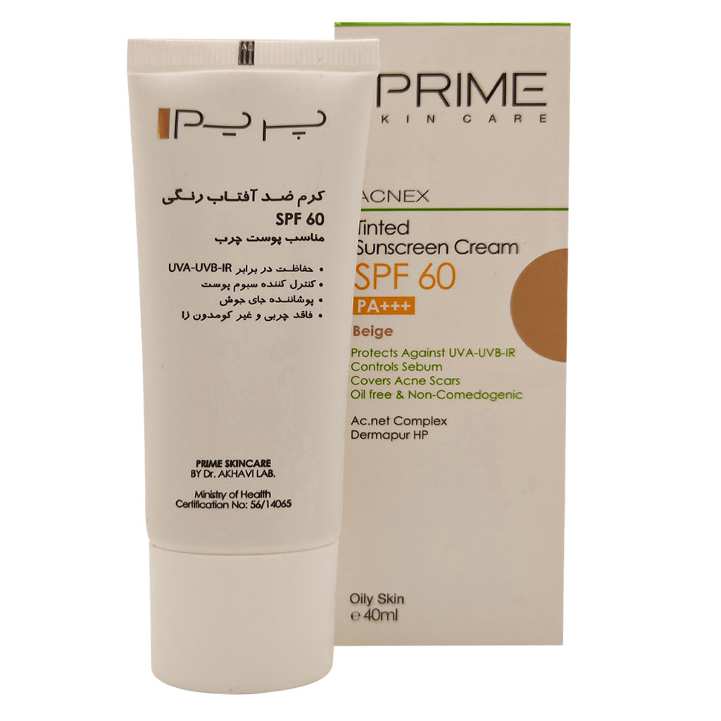 کرم ضد آفتاب فاقد چربی بژ طبیعی spf 60 پریم 40 میلی لیتر