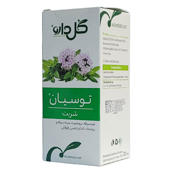شربت توسیان گل دارو یک فرآورده گیاهی است که عمدتاً برای تسکین سرفههای خشک و خلطدار، گلودرد، برونشیت خفیف تا متوسط، و التهابات دستگاه تنفسی فوقانی مورد استفاده قرار میگیرد. این دارو محصول شرکت گل دارو است که در زمینه داروهای گیاهی سابقهای قابل توجه دارد.