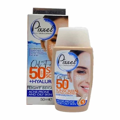 کرم ضد آفتاب SPF 50 بژ طلایی پوست چرب وجوش دار ومختلط Pixxel حجم 50 میلی لیتر