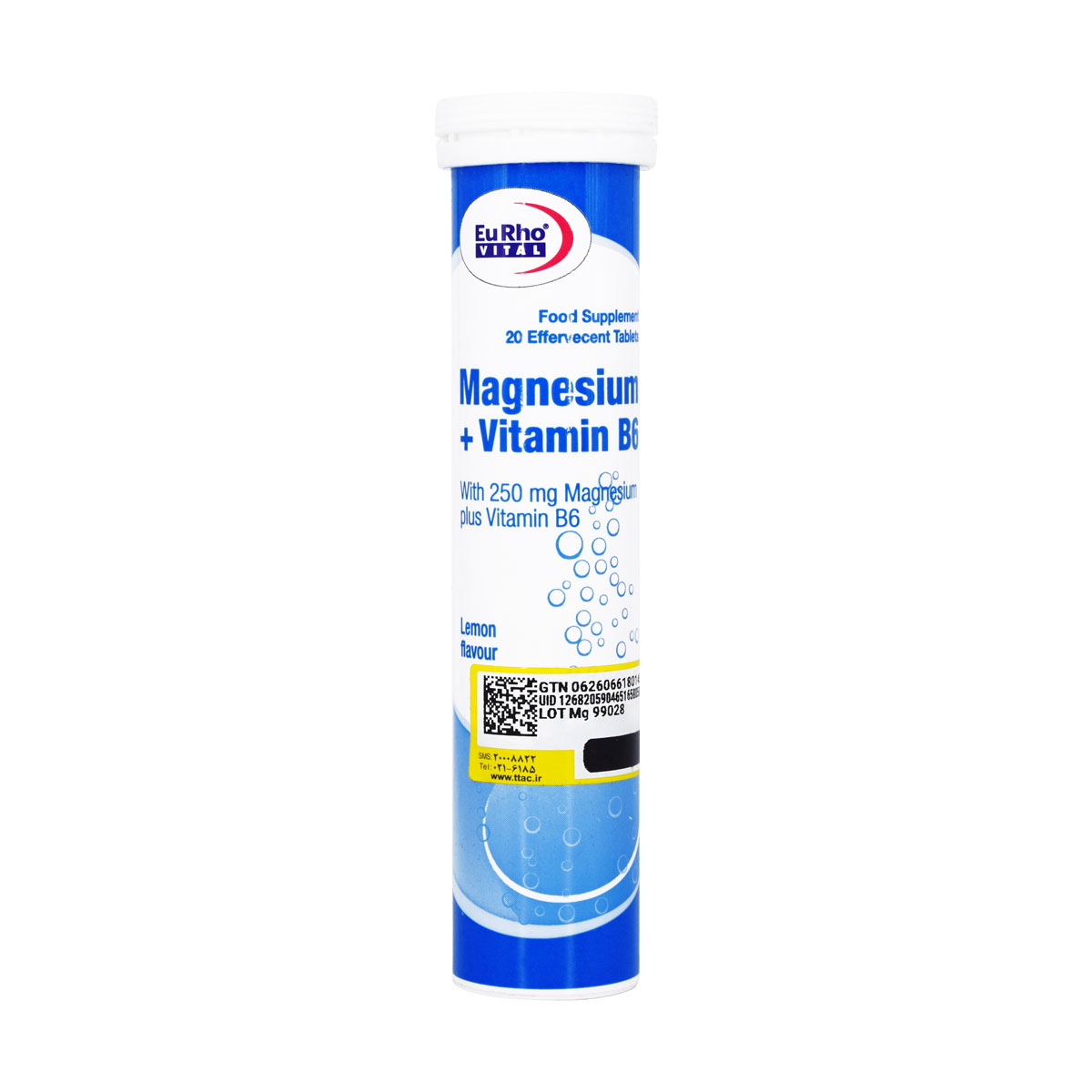 منیزیوم ب 6 قرص جوشان 250 میلی گرم با طعم لیمو یوروویتال 20 عدد