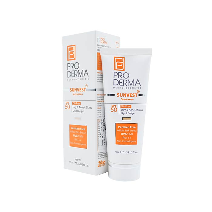 کرم ضد آفتاب spf50 فاقد چربی بدون رنگ پرودرما 40میلی لیتر