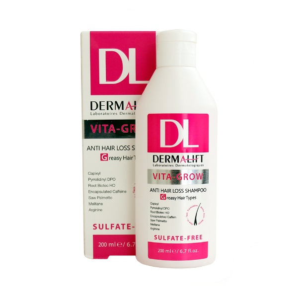 شامپو تقویت کننده مناسب موهای چرب درمالیفت مدل VITA GROW حجم200میلی لیتر