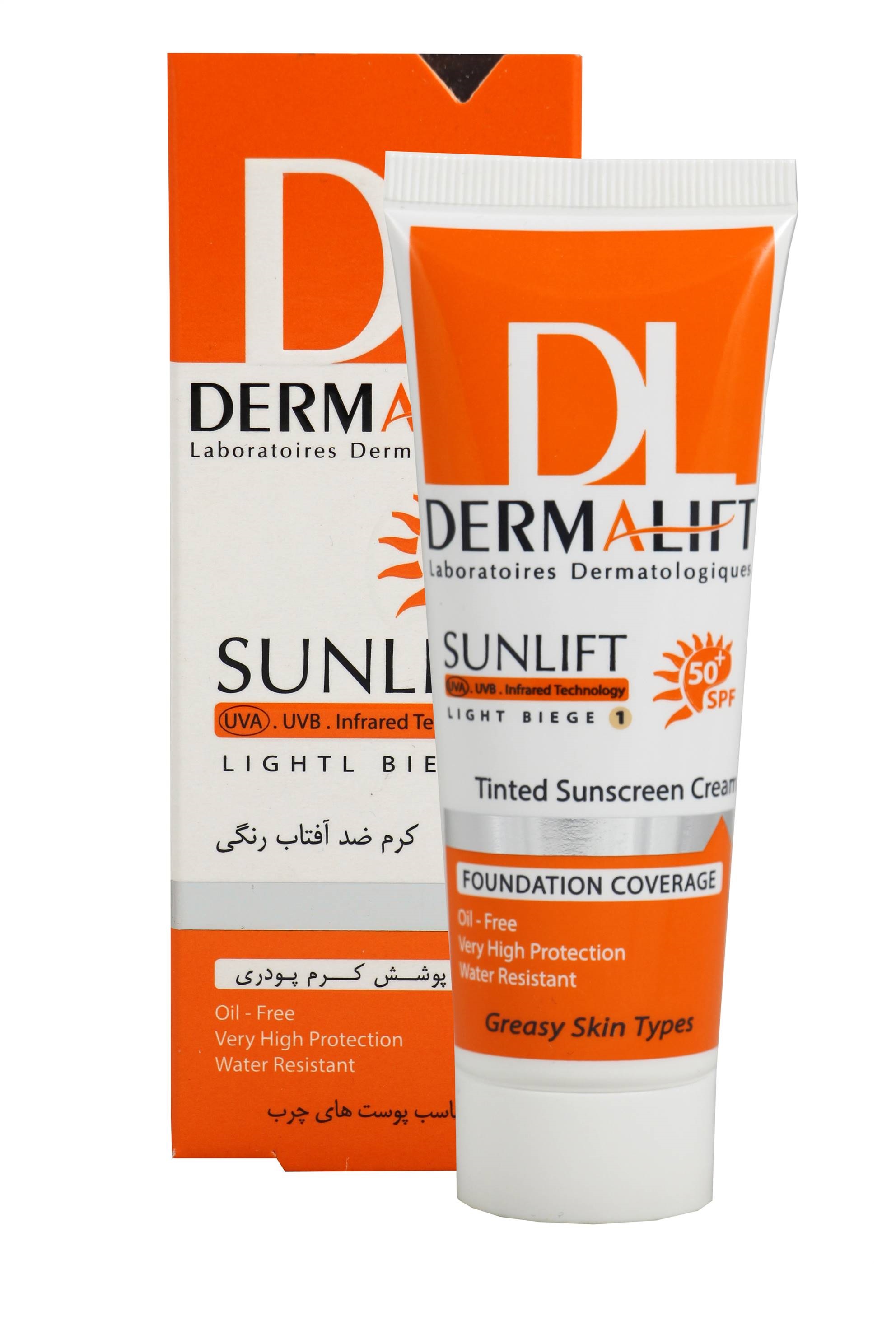 کرم ضد آفتاب رنگیSPF50 پوست چرب بژ روشن و تیره درمالیفت 40 میلی گرم