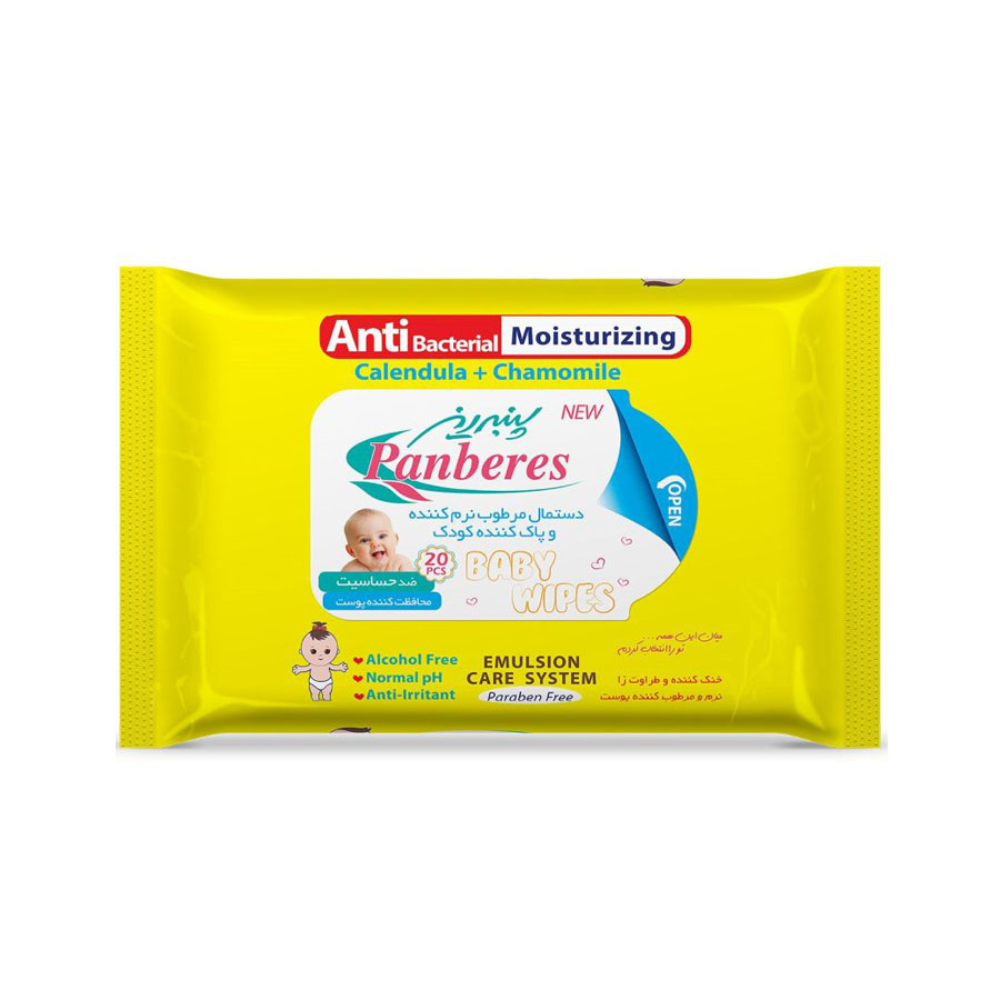 دستمال مرطوب نرم کننده و پاک کننده کودک پنبه ریز 20 برگ