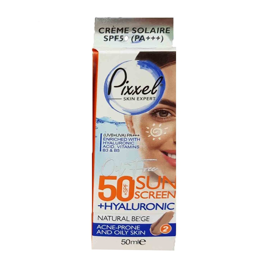 کرم ضد آفتاب SPF 50 بژ طبیعی پوست چرب وجوش دار ومختلط Pixxel حجم 50 میلی لیتر